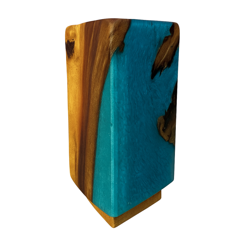 I’m a self-taught woodworker and artist who works with unusual timbers, often combining them with bio resin or lead-free metal to highlight their natural beauty and imperfections. Each piece is unique, shaped by the wood’s own story — its grain, flaws, and texture.